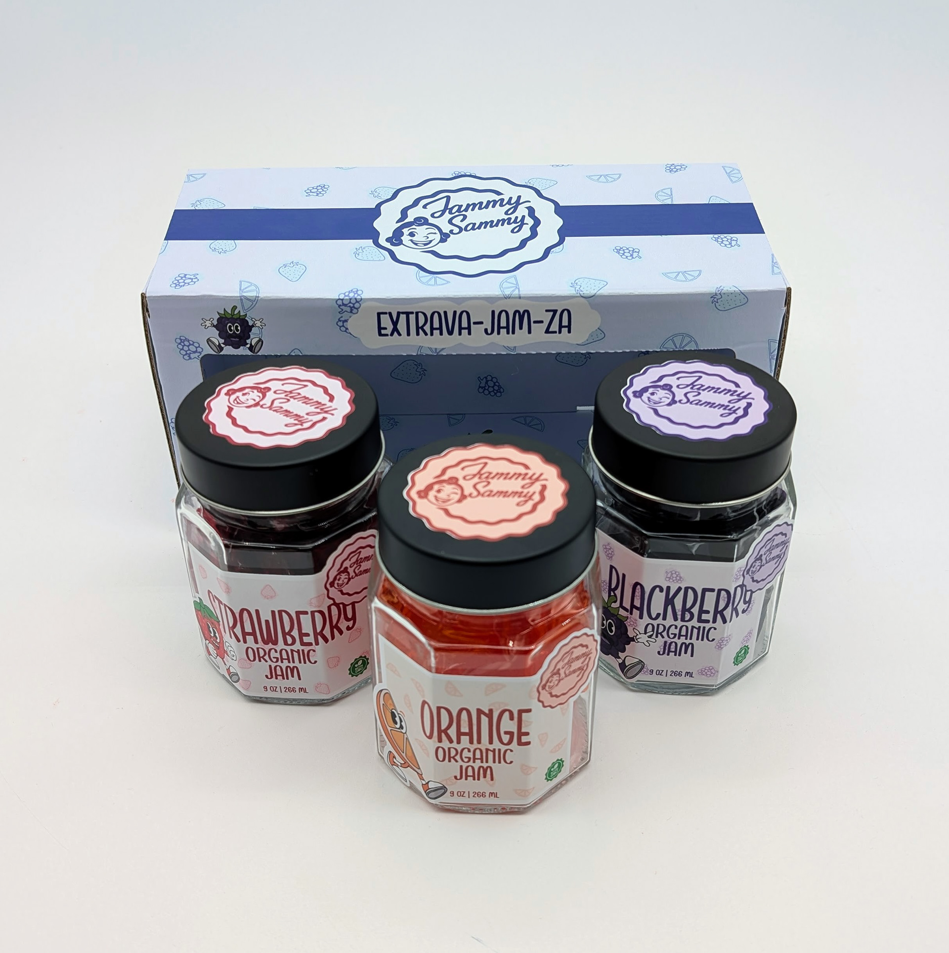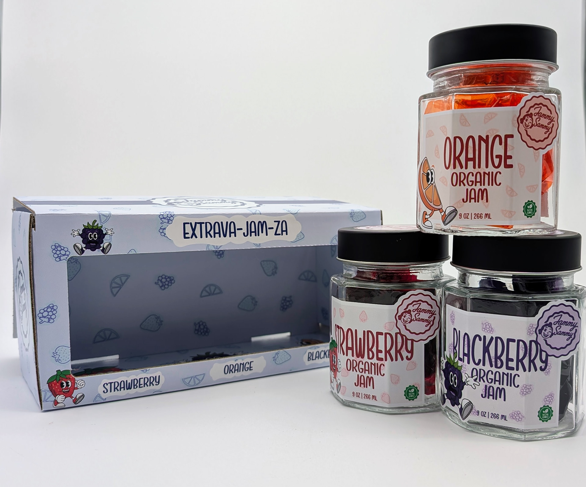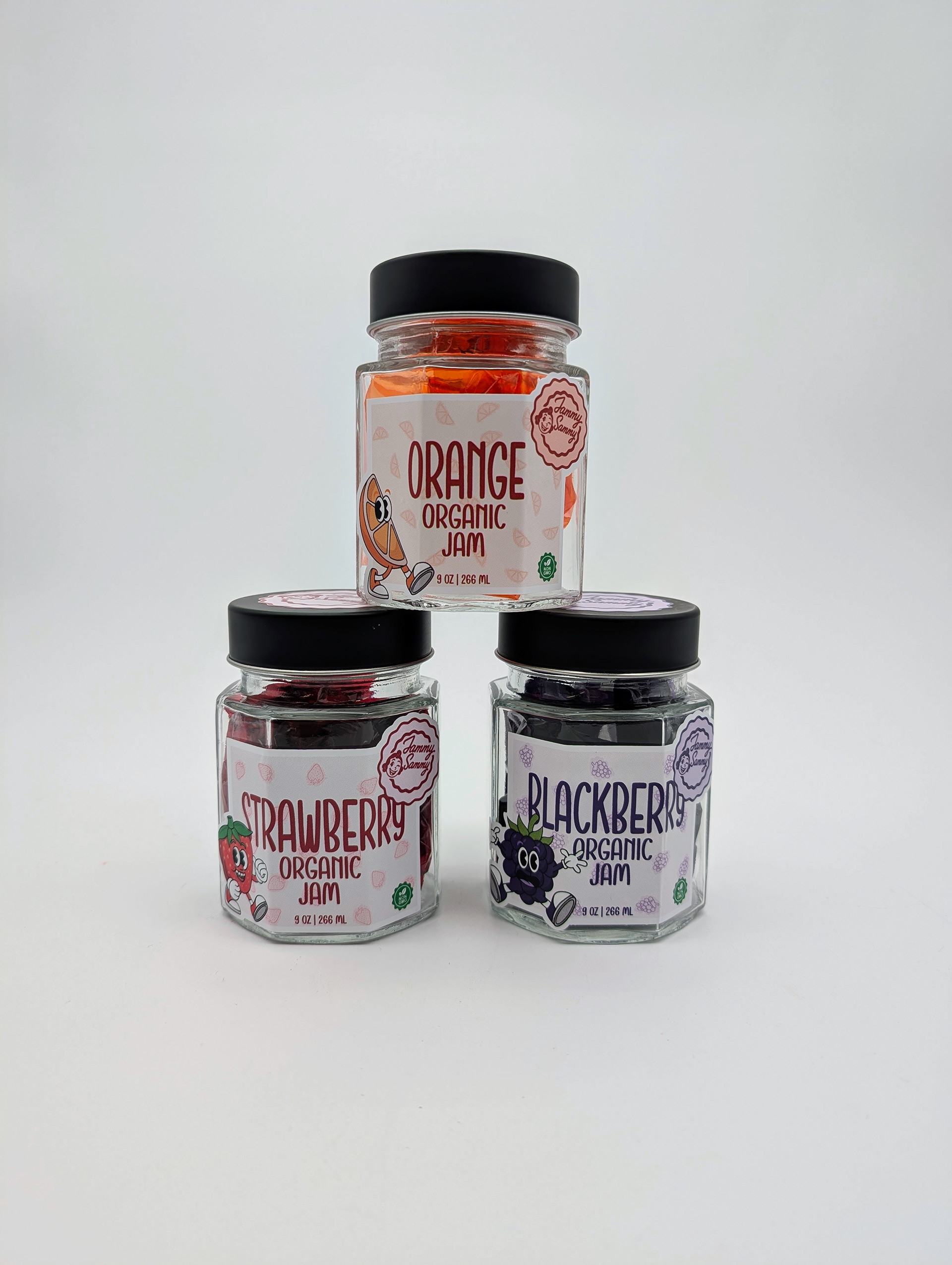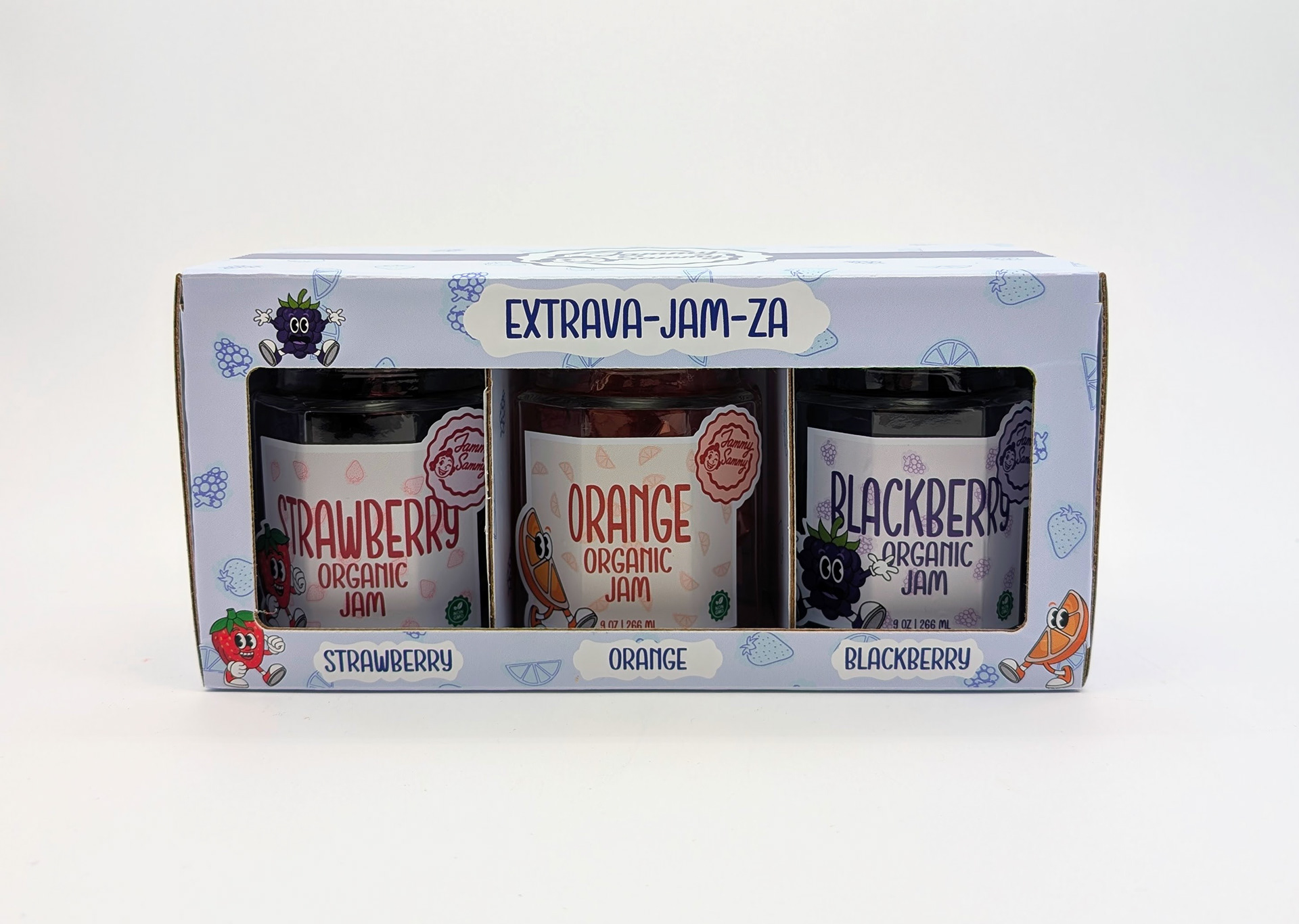 For this project, I created a fictional jam brand called Jammy Sammy. My goal was to give the brand a retro look of the 60s-70s that made it look interesting and grab shoppers attention.